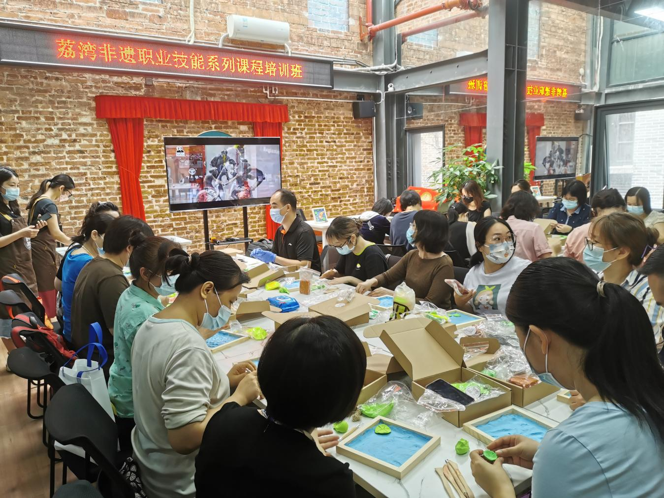 荔湾区永庆坊技能加油站扎根非遗街区,打造“非遗技艺+创业孵化”特色站点,常态化开展广绣、广彩等“三雕一彩一绣”非遗培训,让老手艺走进群众生活;