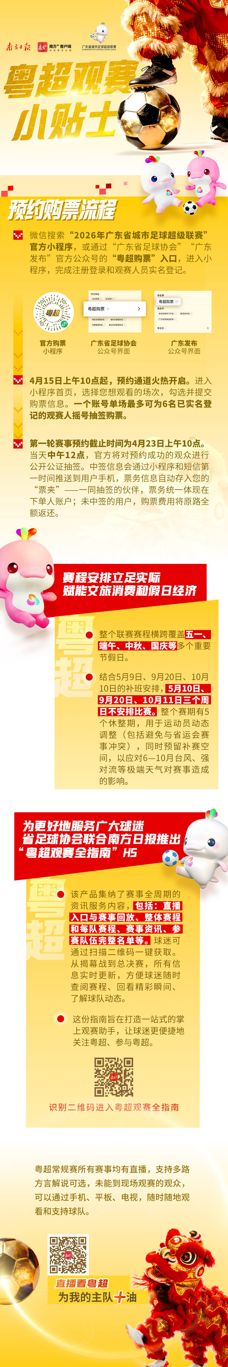 粤超15日10时开始抢票!1.2m以下儿童由父母陪同可免费入场