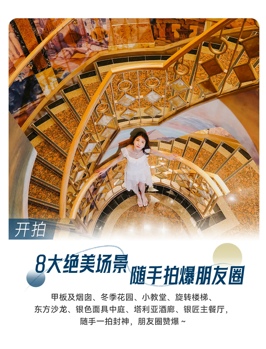 爱达・地中海号被称作“艺术之船”,全船散落上千件艺术作品,把地中海文明与东方美学融在一起,每一层都像在逛艺术馆,8个打卡点一次收好。