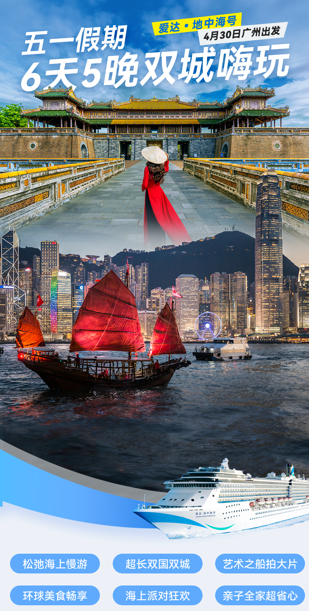 这个五一,我们一起登上爱达·地中海号,向着山海出发,在海上,收获一场满是惊喜的假期吧!