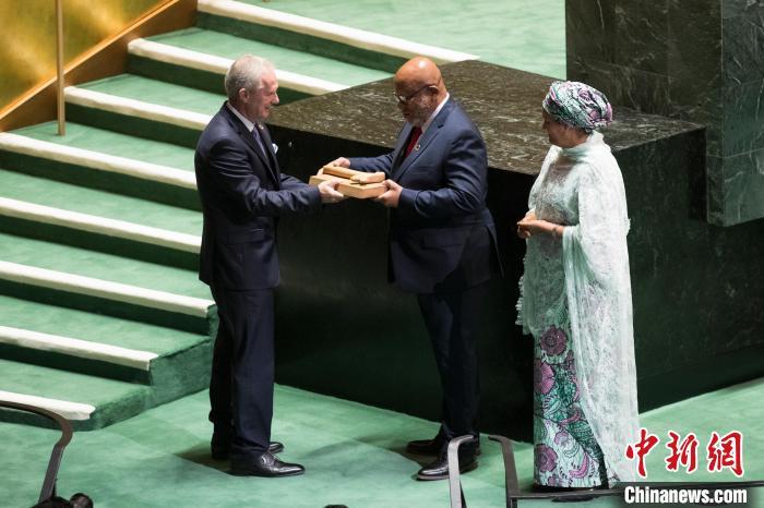 中新社联合国9月5日电 第77届联合国大会5日在纽约联合国总部闭幕。同日,第78届联合国大会开幕,来自特立尼达和多巴哥的外交官弗朗西斯正式就任第78届联大主席。